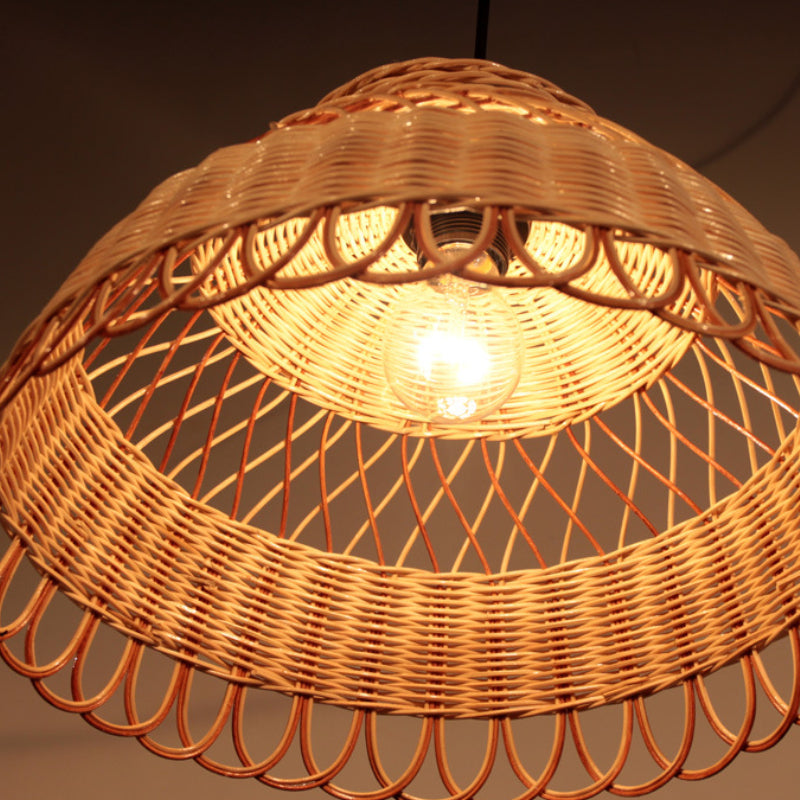 This bamboo hollow fan-shaped pendant light is made of natural bamboo and carefully carved by hand by craftsmen to create a unique fan-shaped hollow design. The light structure emits soft light, creating a warm home atmosphere and having an artistic decorative effect. The perfect combination of simple lines and natural materials brings a touch of freshness and nature to the interior space.