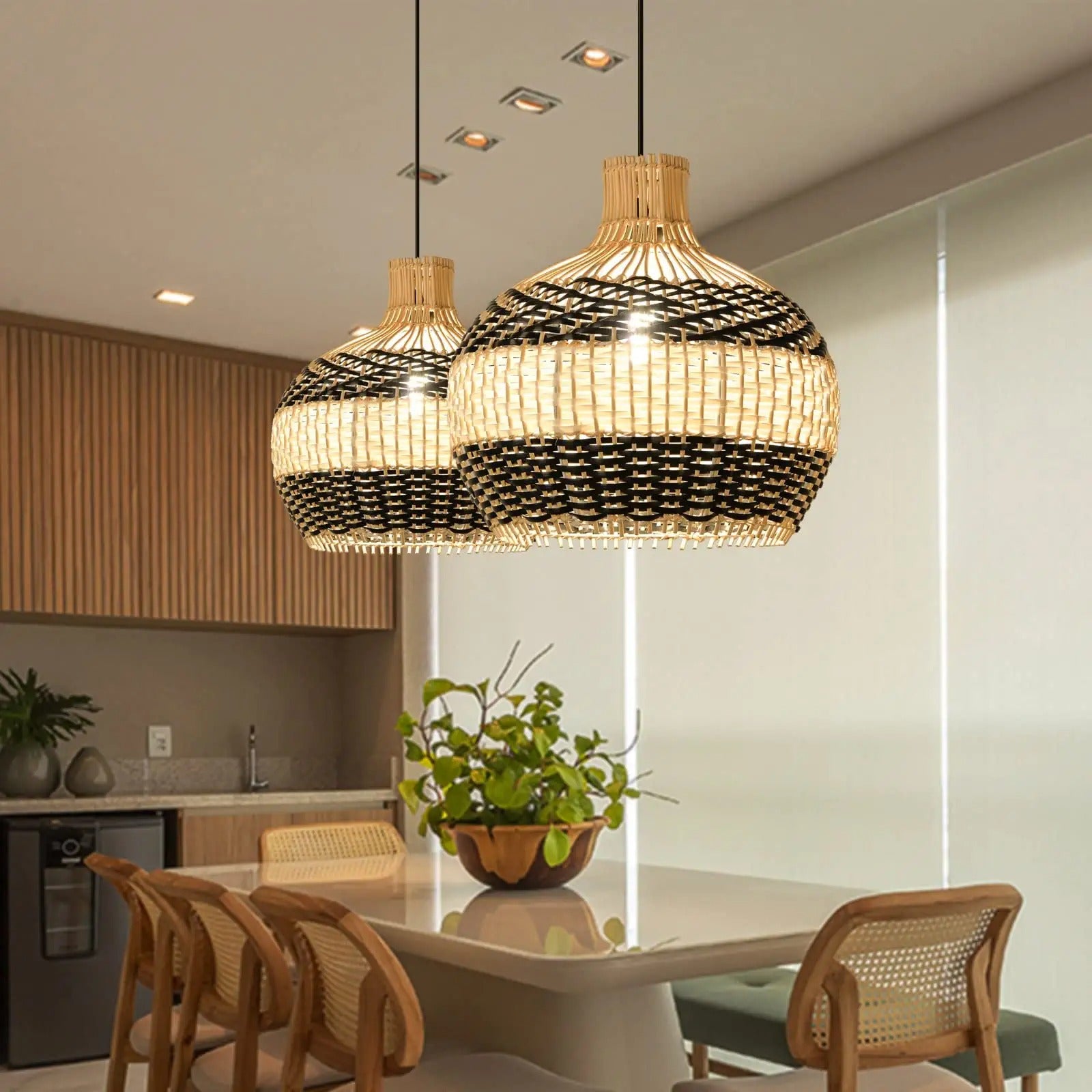 The inherent beauty of natural rattan strands makes this pendant a versatile choice for infusing a room with warmth and tactile interest. As light filters through the intricate woven rattan, it creates a柔和的辉光 that washes over the space in gentle waves. The open, woven construction of the pendant not only allows for an expansive spread of light but also preserves an airy and laid-back visual appeal.