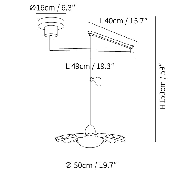 59″ Adjustable hanging height cable. Can be extended upon request.