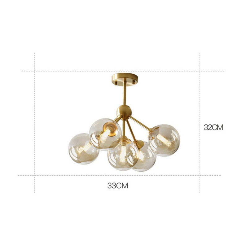 The Bubble Pendant Light is a chic brass chandelier featuring glass orbs that exude sophistication and luxury. This modern lighting fixture, crafted from high-quality metal and glass, promises both durability and aesthetics. Its design draws inspiration from the graceful shape of glass spheres, which are carefully made to disperse soft, warm light. The brass metal component is finely polished to display a majestic metallic sheen. This chandelier adds a touch of refined luxury and contemporary style to your home, making it a perfect centerpiece for living rooms, bedrooms, or dining areas.