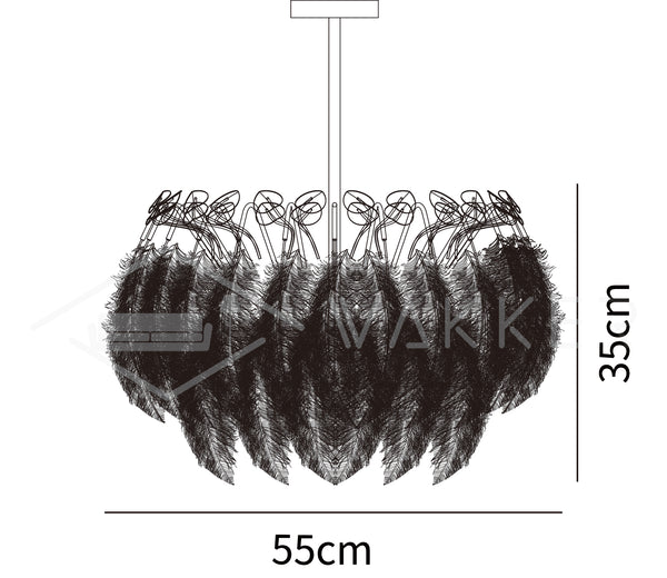 These glamorous feather pendant lamps feature luxurious black or white feathers held in place by a gold metal wire frame. Soft and delicate, the lights are reminiscent of the elegant feather boas and decadent hats of days gone by, but the design is totally contemporary. The Lamps feature a ring of authentic feathers secured by a series of metal gold arms which glow and glint seductively when alight.