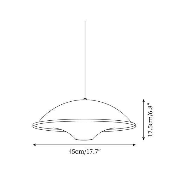 Introduce modern, minimalist style to any space with our sleek UFO-inspired Fontana Pendant Lamp. Its expansive, smooth surface not only looks beautiful, but also provides a soft, warm light. The bold black trim adds visual contrast and draws the eye upward.