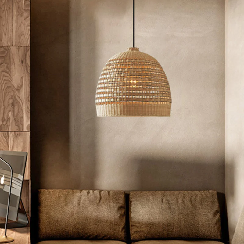 The natural, rattan-like material that is woven to create the look of an organic basket that makes up the impressive domed shade is perfectly at home amongst a coastal facade.
