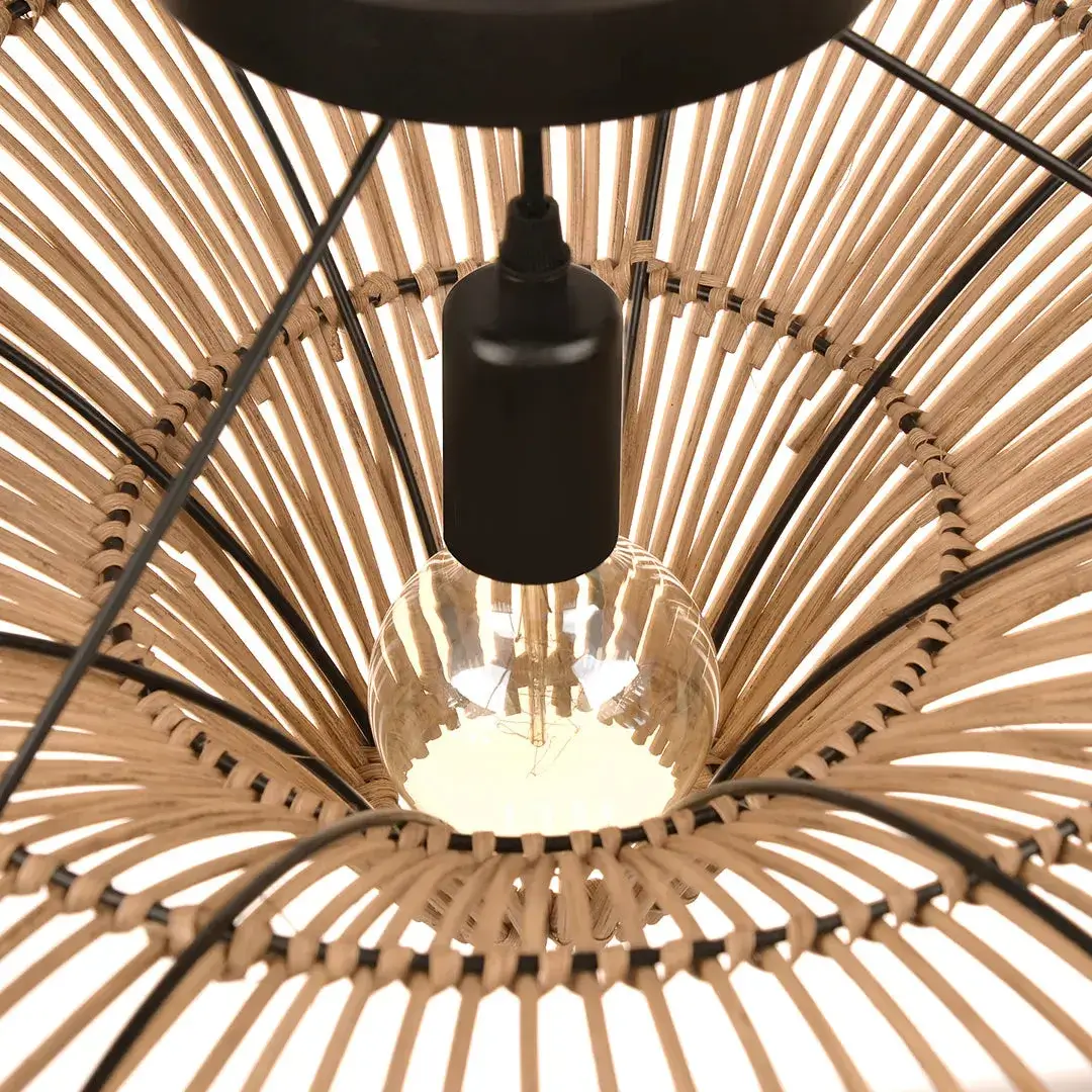A mid century design, coastal home decor. Interior design trends.Made of natural rattan with metal frame inside. A sturdy oversized rattan lamp suitable for indoor or outdoor lighting under cover and some designs are suitable for exposed outdoor.