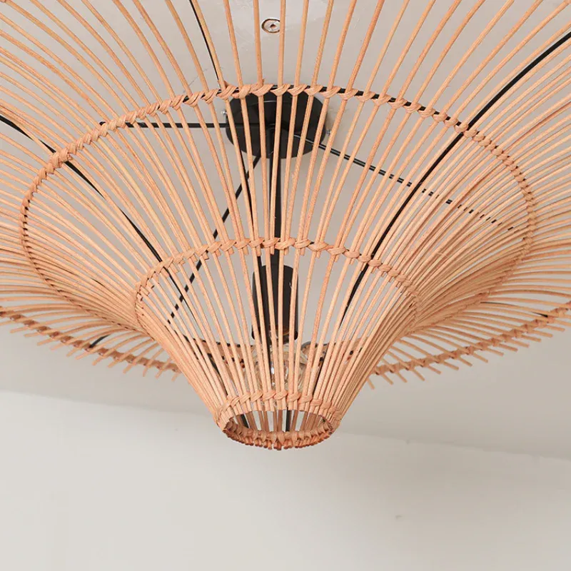 A mid century design, coastal home decor. Interior design trends.Made of natural rattan with metal frame inside. A sturdy oversized rattan lamp suitable for indoor or outdoor lighting under cover and some designs are suitable for exposed outdoor.