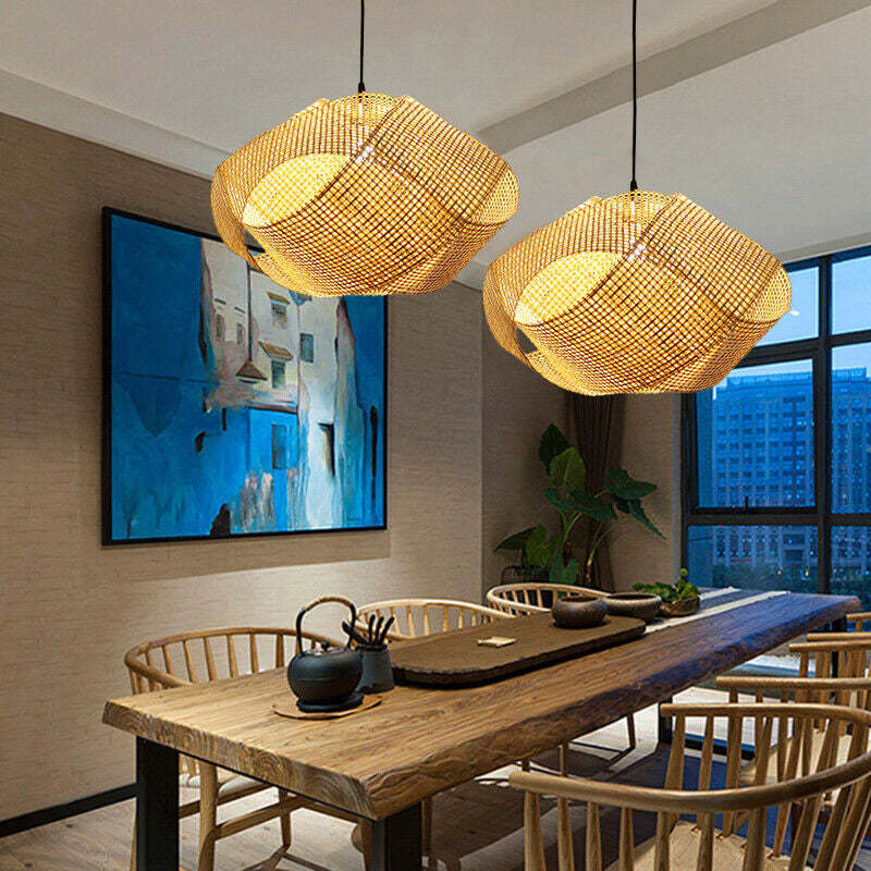 Combining modern design concepts, twisted bamboo strips are cleverly woven to form a unique three-dimensional effect. The pendant light made of natural bamboo embodies the perfect fusion of environmental protection and art, emitting soft and uniform light, bringing a fresh natural atmosphere to your living space while highlighting a unique sense of fashion.