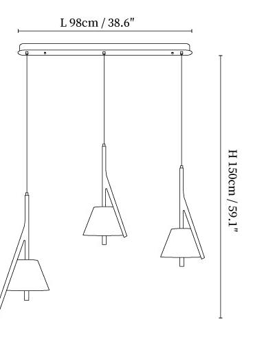 59″ Adjustable hanging height cable, which can be lengthened as required.