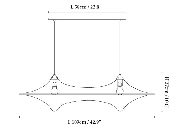 59″ Adjustable hanging height cable, which can be lengthened as required.