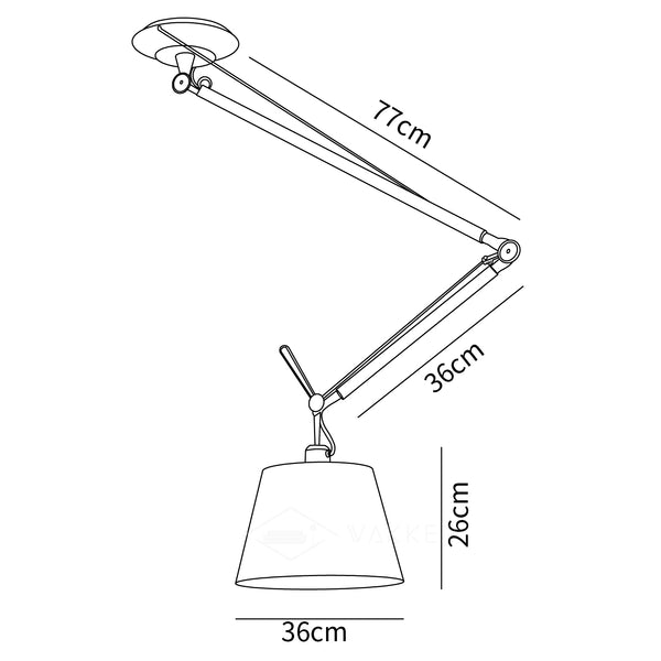 Ceiling suspended luminaire for adjustable directional lighting developed to offer maximum flexibility of adjustment in the positioning of the light source. Fully articulated arm in extruded natural metal.