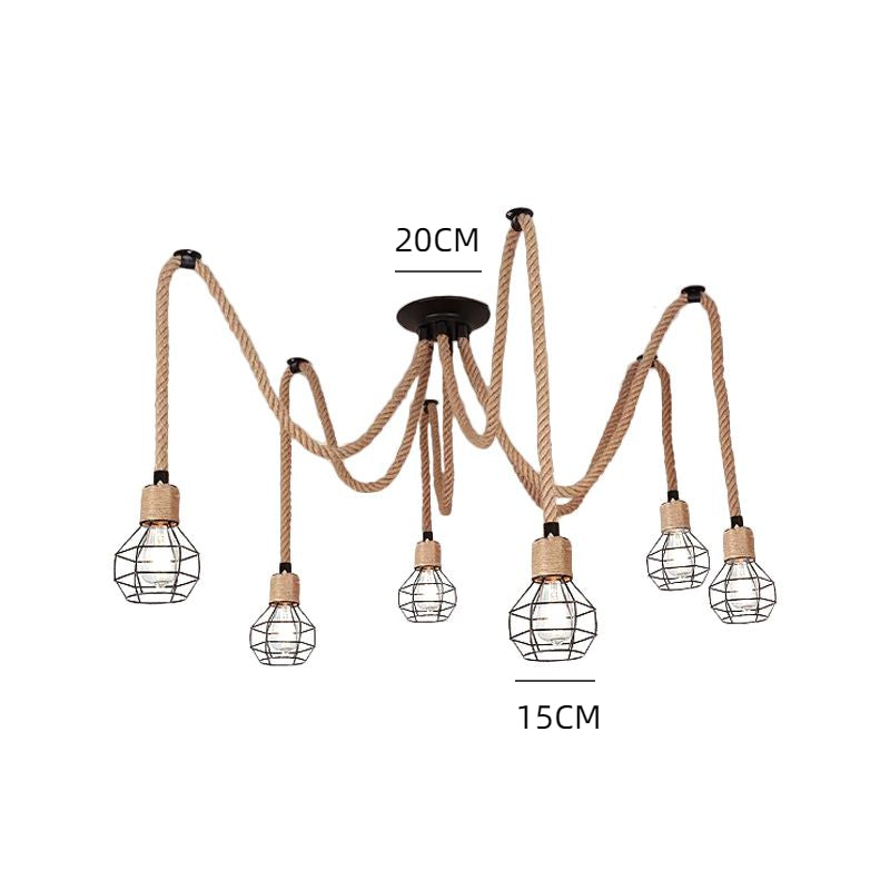 This 6-light brown spherical cage rope chandelier has a unique design. It is woven into a sphere with brown cage ropes and contains six light sources, emitting soft and even light. It combines beauty and functionality, illuminating the space and serving as a decoration to embellish the home environment. Whether it is a modern and simple or a retro style home, it can be perfectly integrated to add a warm atmosphere to your living space.