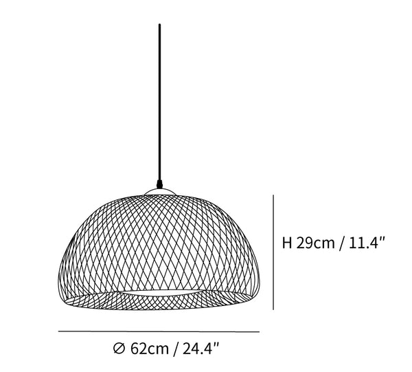 Expertly hand-woven bamboo forms a broad, inviting dome, casting a patterned light that brings a piece of nature indoors. The understated elegance of the glass diffuser enhances the warm light, making it perfect for spaces designed with a nod to both tradition and modernity. This light fixture is an ideal choice for those looking to infuse their home with a serene, yet sophisticated, ambiance.
